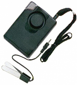 Posiada plastikowy klips do noszenia na pasku, a dzięki dodatkowym elementom może służyć jako alarm drzwiowy i okienny.